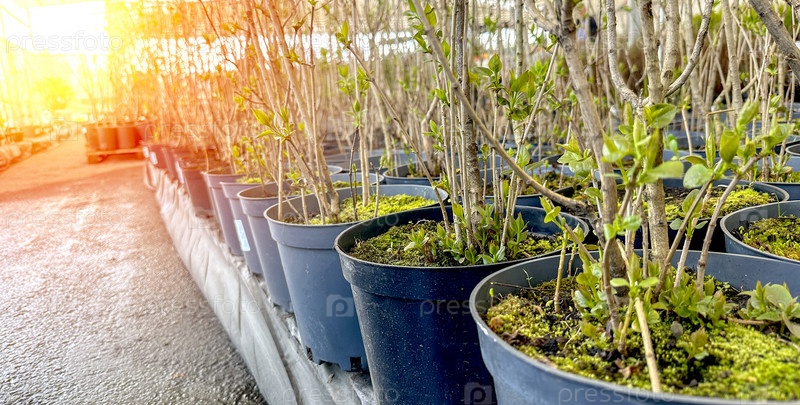 Молодые деревья в питомнике для садоводов
