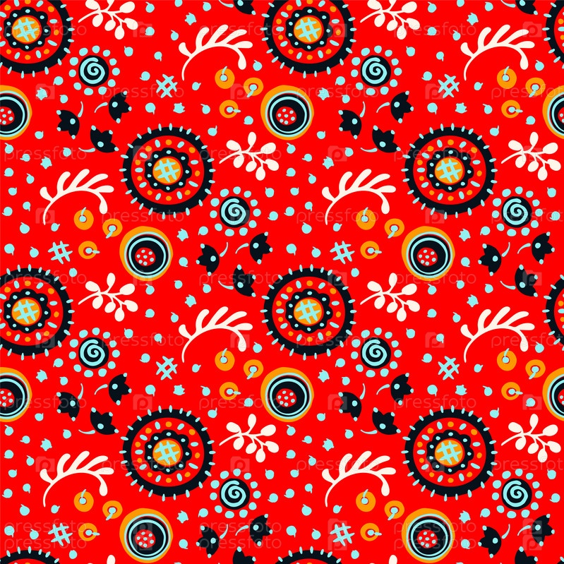 Бесшовный узор с фантазийными цветами, этнический вращающийся повторяющийся дизайн ткани и плитки, натуральные обои, иллюстрация завитка цветочного декора. Пейсли печать рисованной элементы.Украинский узор