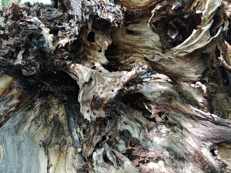 Волнистый узор из дерева внутри упавшего дерева. Фон текстуры дерева. Флорид движется от термитов и насекомых. Гнилое дерево. Влияние времени и влаги на материал