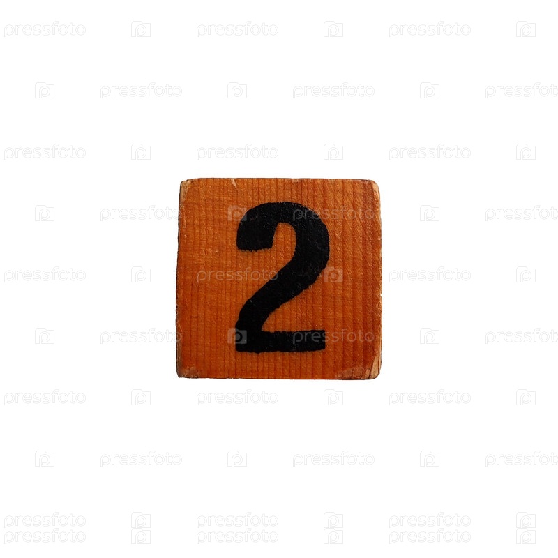 Номер 2 на деревянном фоне. Два, нанесенных черной краской по трафарету. Текстура дерева