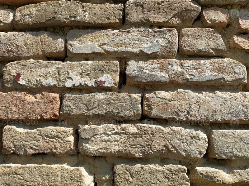 Старая кирпичная кладка. Стена старого жилого дома. Кирпичная стена из ярко-красного кирпича. Слегка изношенная поверхность. Кладка аккуратная, между рядами цемент. Гранж-фон. Внешний вид здания