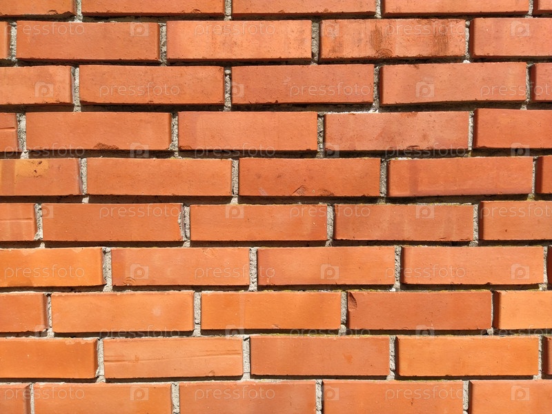 Стена из красного кирпича. Красиво и аккуратно сложенная кирпичная стена в солнечном свете