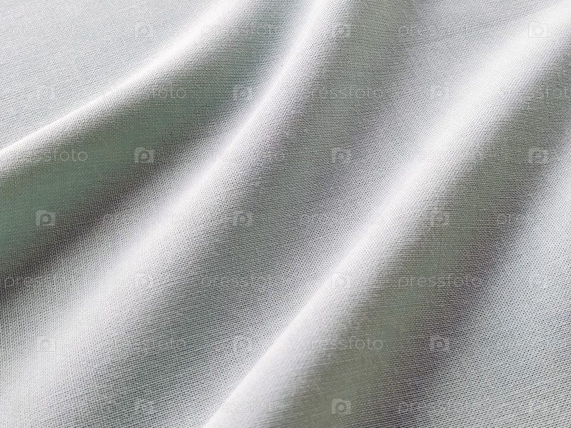 Красиво сложенная ткань. Мягкие приятные волны и воланы на текстиле. Крупный план. Драпировка для штор, ткань для пошива одежды или обивки. Черно-белое монохромное изображение