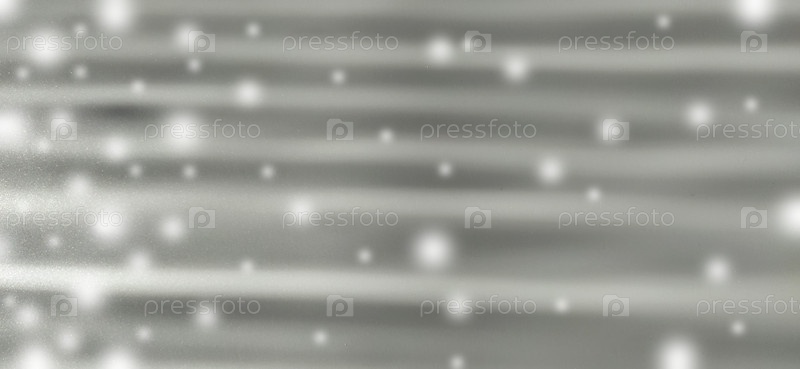 Горизонтальные лучи и белое боке на сером блестящем фоне. Новогодний или рождественский фон с белыми пятнами, похожими на летящий снег. Лунные лучи. Размытое изображение