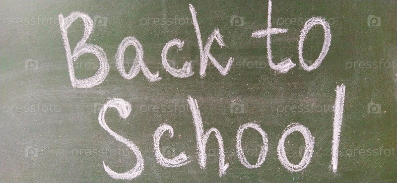 Снова в школу надписи на школьной зеленой доске, написанные от руки белым мелом