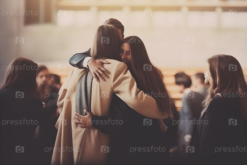 Выпускники школы обнимаются