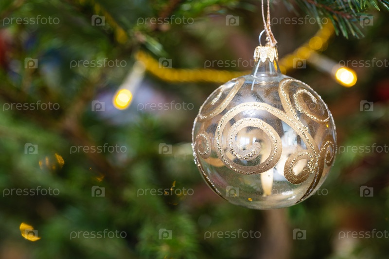 Шар, украшенный золотым узором на елке