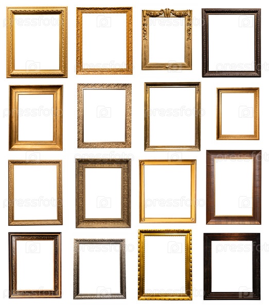 Набор вертикальных старых деревянных фоторамок, изолированных