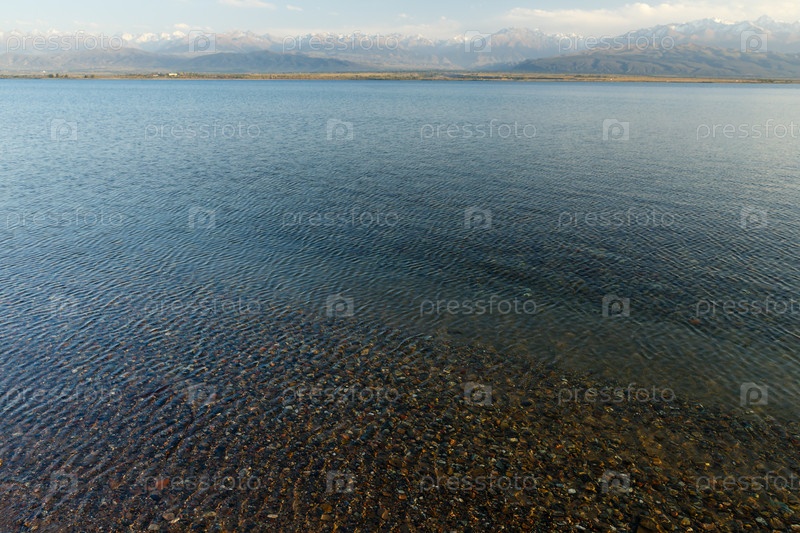 Чистая вода в озере Иссык-Куль, камни на дне озера, Кыргызстан