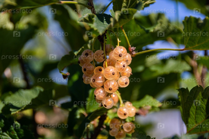 На садовом участке созрели крупные спелые ягоды белой смородины