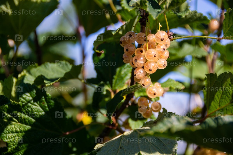 На садовом участке созрели крупные спелые ягоды белой смородины
