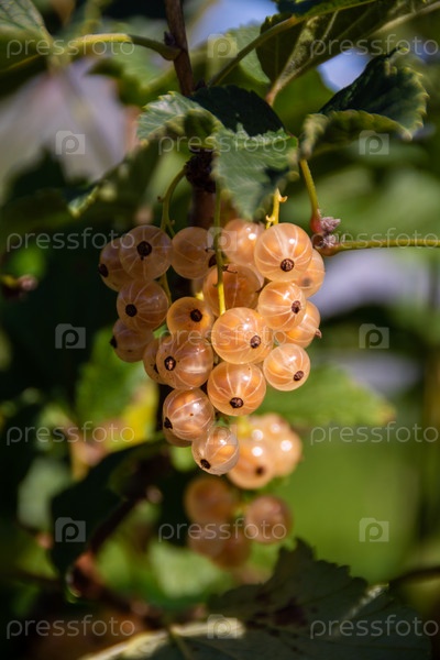 На садовом участке созрели крупные спелые ягоды белой смородины