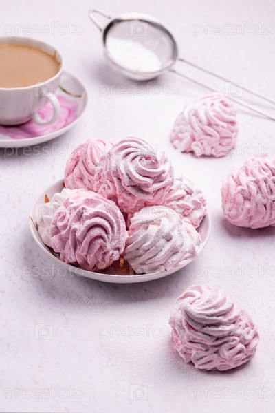 Вкусный сладкий десерт розовый зефир крупным планом, избирательный фокус