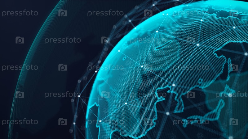 Подключение к глобальной сети Концепция защиты планеты Обмен данными по всему миру Абстрактный фон Большие данные 3D-рендеринг