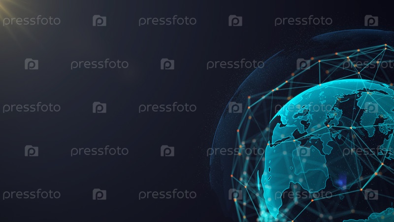 Подключение к глобальной сети Концепция защиты планеты Обмен данными по всему миру Абстрактный синий фон Большие данные 3D-рендеринг