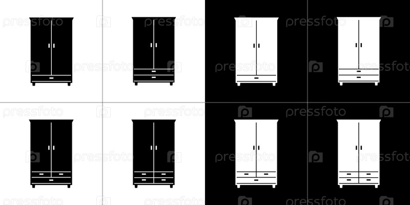 Шкафы для одежды. Четыре мебельных иконки. Черные и белые