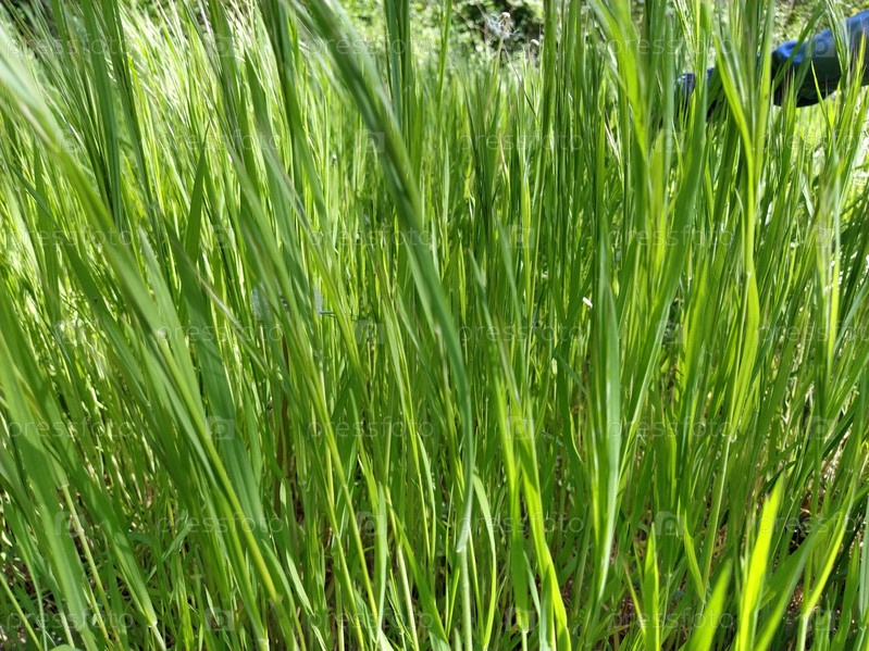 Зеленая предпосылка травы с лучом солнца. Пшеничное поле. Взошли посевы озимых культур. Весна или лето. Частично расфокусированное горизонтальное фото