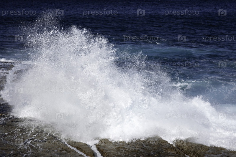 Океанские волны грохочут на скалах