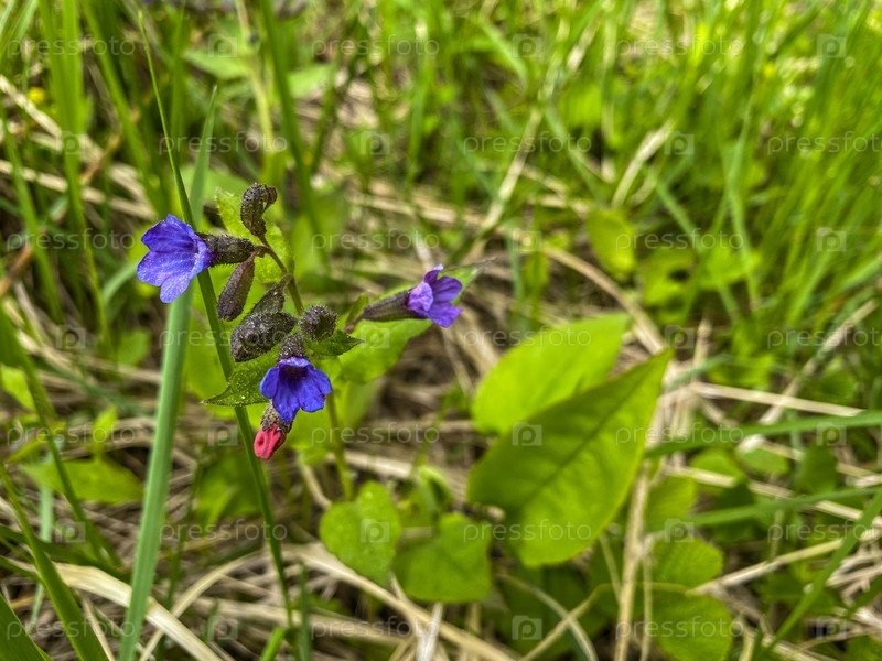 Пурпурная медуница в лесу весной