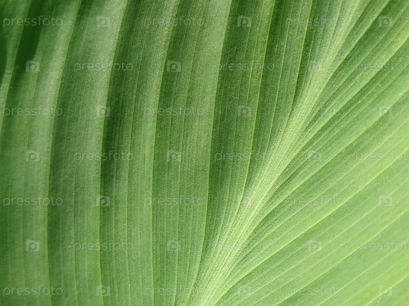 Абстрактный полосатый зеленый естественный фон, детали бананового листа или хосты. Винтажный тон с мягким фокусом. Крупный план листа растения