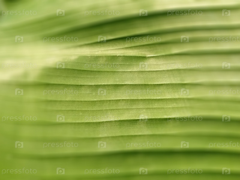 Зеленый полосатый растительный размытый абстрактный фон. Крупный план листа с зелеными прожилками. Эффект мягкого фокуса. Текстура листьев бананового дерева или хосты
