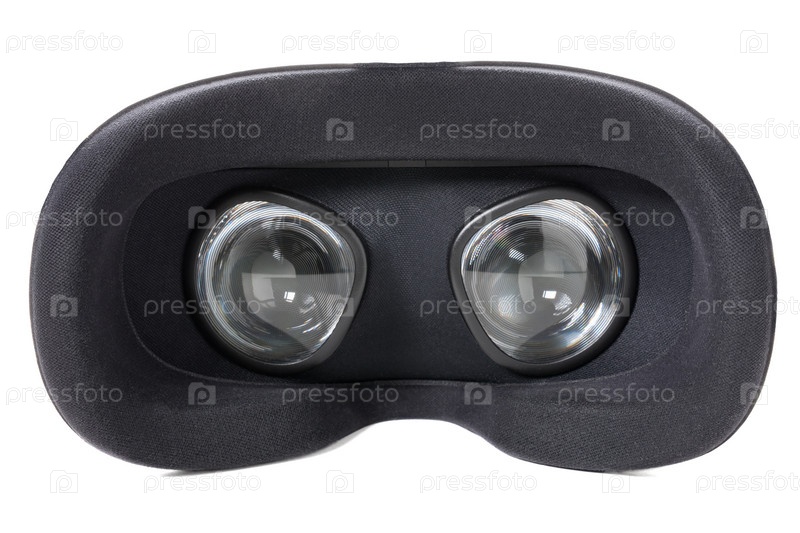 Крупный план очков виртуальной реальности, изолированных на белом фоне. Вид изнутри. Шлем виртуальной реальности
