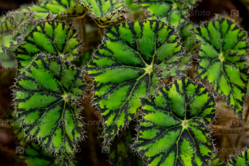Зеленые полосатые и пятнистые листья домашних растений крупным планом на естественном фоне