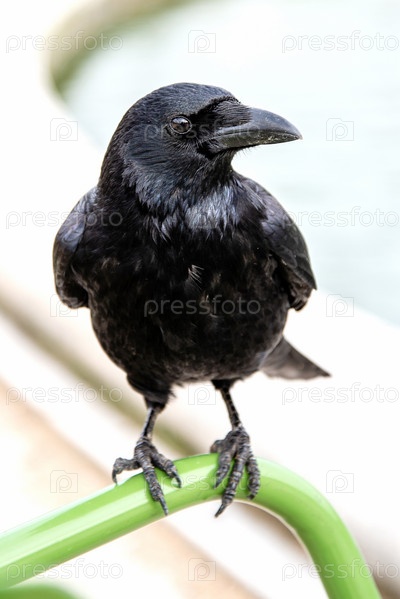 Черный ворон крупным планом, наблюдение за птицами