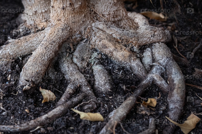 Переплетение корней растений на поверхности земли
