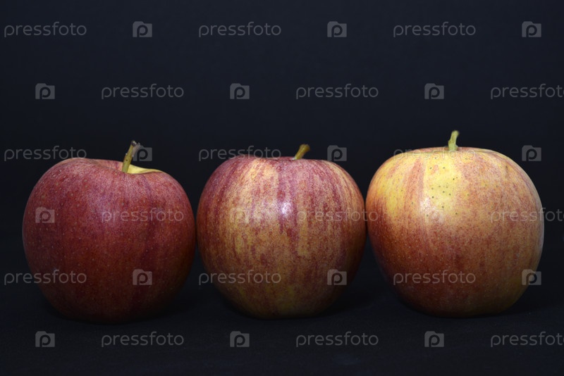 Красные и желтые яблоки на черном фоне. Вкусные яблоки крупным планом