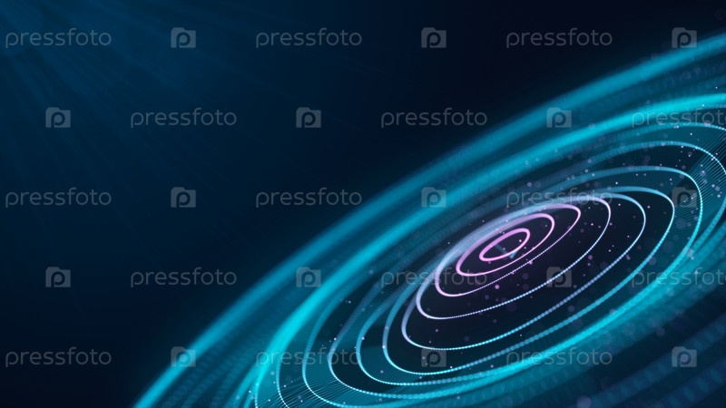 Футуристический фон. Волновой эффект цифровых частиц. Большие данные. Иллюстрация технологий и искусственного интеллекта. Эффект колебания частиц. 3D-рендеринг