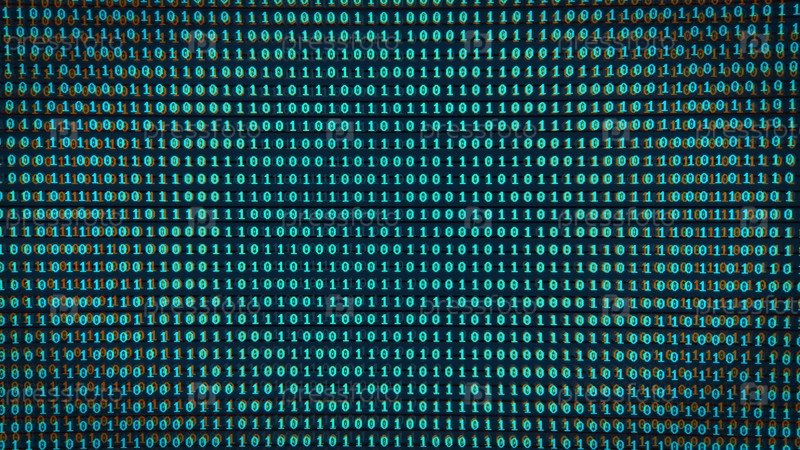 Цифровой фон бинарного кода с эффектом глюка на экране. Концепция шифрования, безопасности, майнинга. 3D-рендеринг