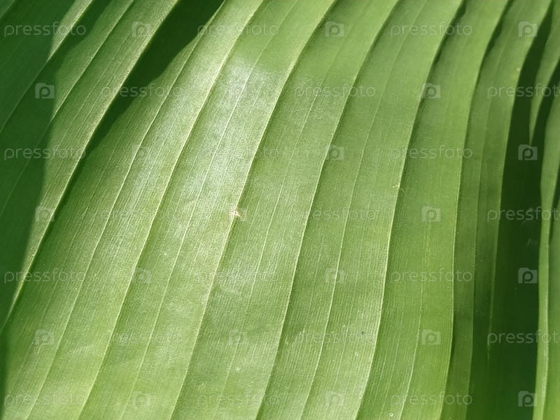 Зеленый полосатый растительный размытый абстрактный фон. Крупный план листа с зелеными прожилками. Эффект мягкого фокуса. Текстура листьев бананового дерева или хосты