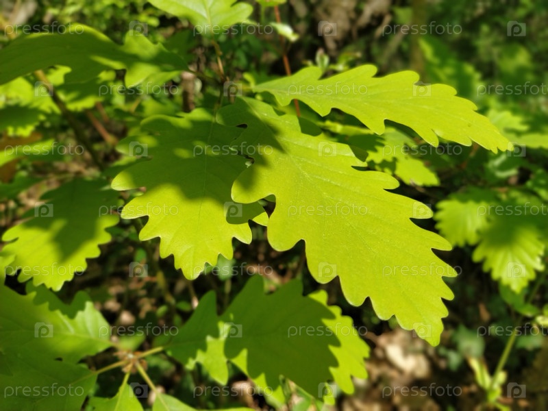 Молодой выросший дуб. Лузитанский дуб - латынь - Quercus lusitanica. Мягкий солнечный свет через лесные листья. Эффект глубины и размытия по краям фото. Лес на Фрушка-Горе, Сербия