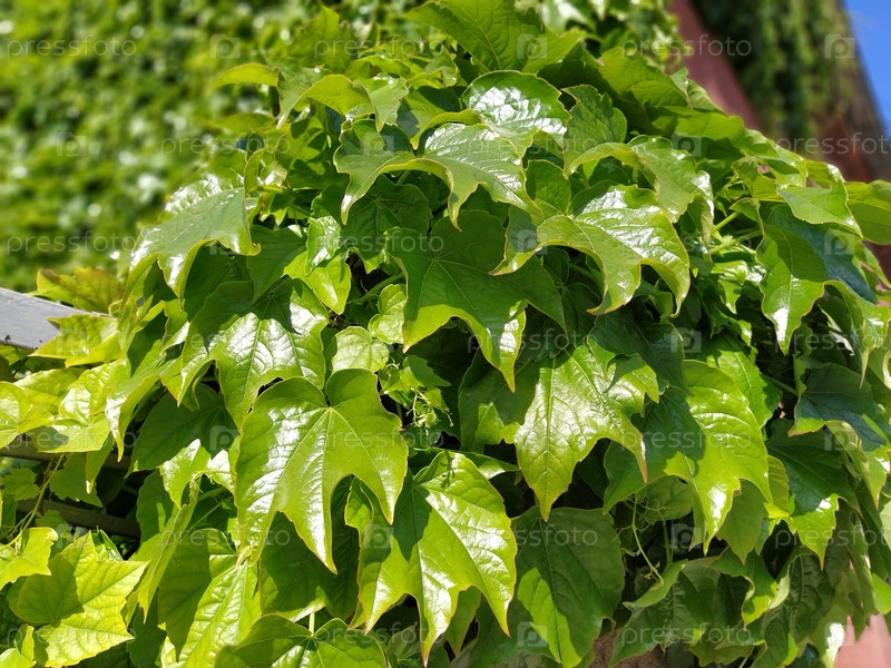 Молодые спиральные листья обыкновенного плюща Хедера весной. Концепция природы для дизайна. Зеленое ползучее растение с крупным планом в качестве фона. Ярко-зеленый цвет со следами солнечного света. Каркас ограждения или стен