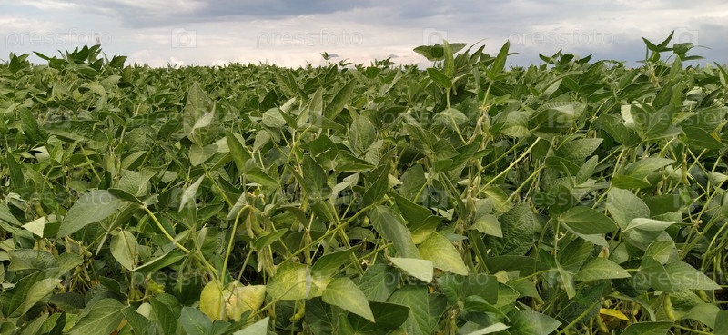 Соевое поле с растениями сои. Влияние погодных условий на урожай сои