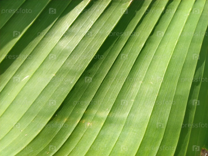 Абстрактный полосатый зеленый естественный фон, детали бананового листа или хосты. Винтажный тон с мягким фокусом. Крупный план листа растения