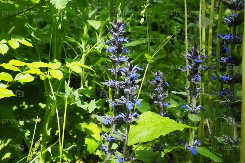 Шалфей, или Шалфей большой род многолетних травянистых растений и кустарников семейства Яснотковых. Шалфей обыкновенная Salvia pratensis. Фиолетовые цветы на высоких кисточках. Национальный парк Фрушка Гора, Сербия, Срем