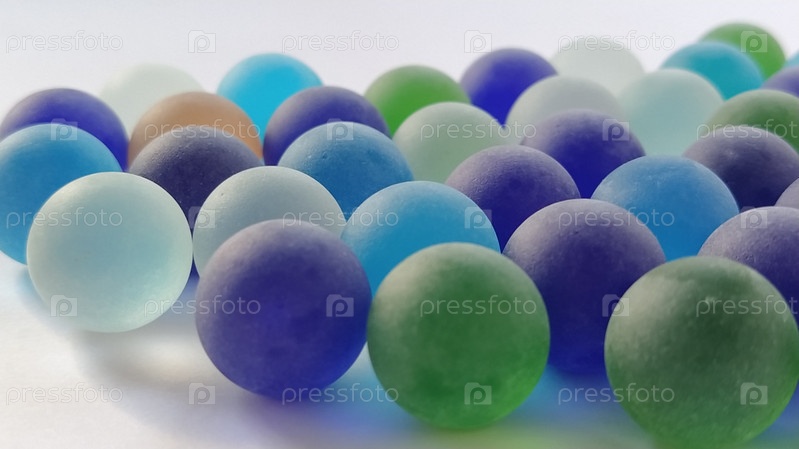 Игровые кликеры или цветные стеклянные шарики, разбросанные по белому фону. заднее освещение