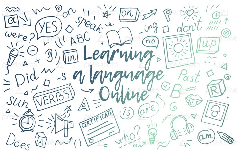Изучение английского языка онлайн, дистанционно. Learning a language Online English on a dark gradient background