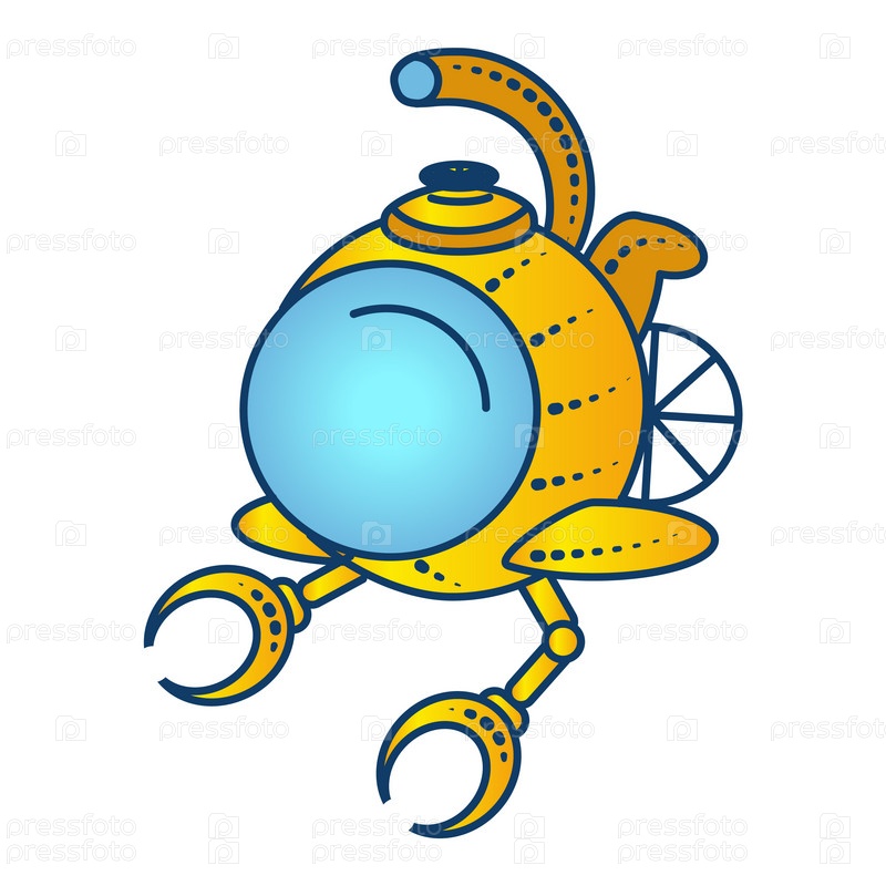 Желтая субмарина, подводная лодка.Желтая подводная лодка, батискаф и контур подводной лодки для окраски.Векторная иллюстрация в стиле мультфильмов