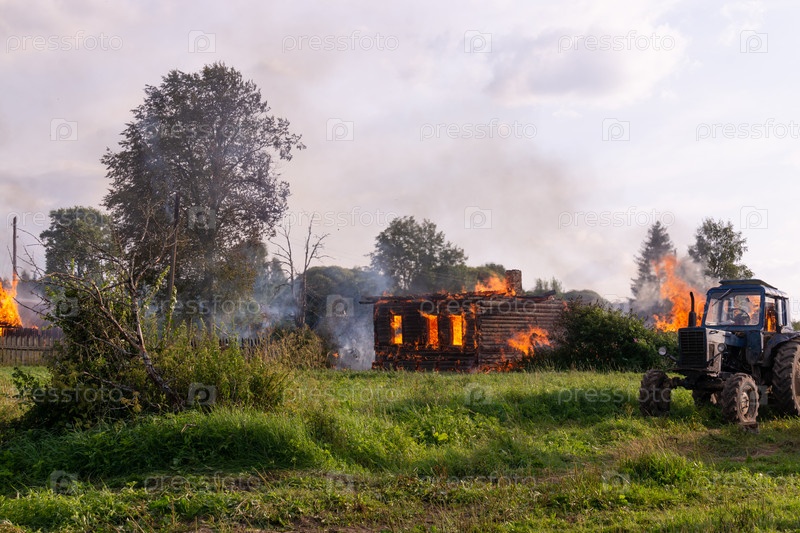 Пожар в деревне. Горящие деревянные дома в селе Ранцево Тверской области