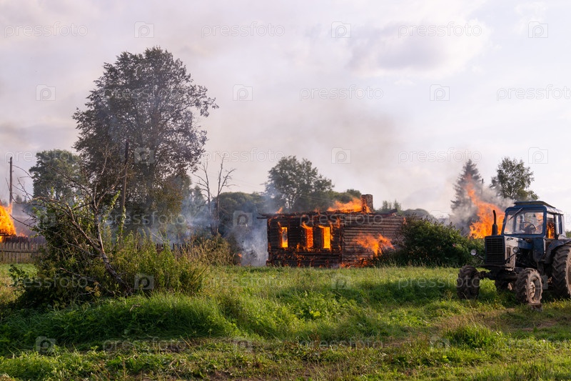 Пожар в деревне. Горящие деревянные дома в селе Ранцево Тверской области