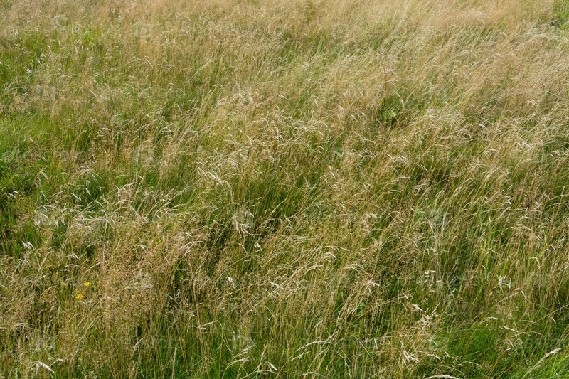 Поле. Густая трава выросла летом на лугу. Поле. Летом на лугу росла густая трава