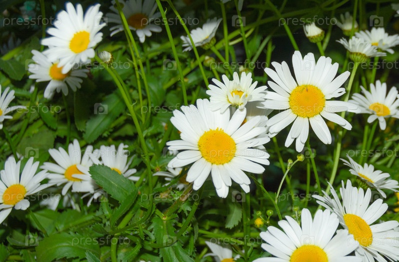 Цветы. Прекрасная белая ромашка зацвела на поляне. Цветы. Красивая белая маргаритка распустилась в чистилище