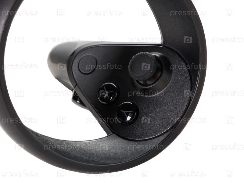 Крупный план джойстика от очков виртуальной реальности, изолированных на белом фоне. Контроллер VR-шлема. Выборочный фокус
