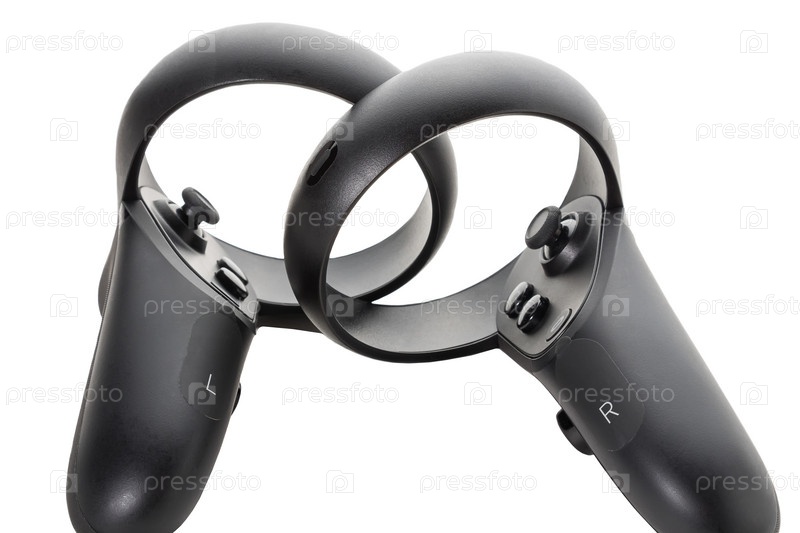 Крупный план двух джойстиков от очков виртуальной реальности, изолированных на белом фоне