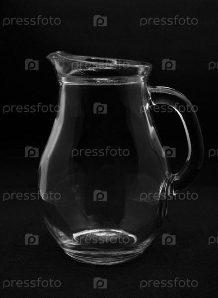 Пустой стеклянный молочник. Стеклянный сосуд на черном фоне