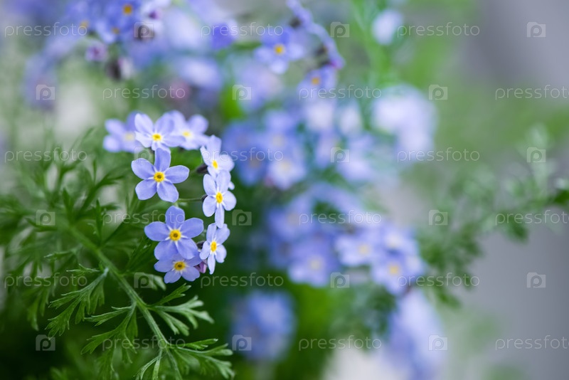Цветущие голубые незабудки цветы летние цветочные размытый фон