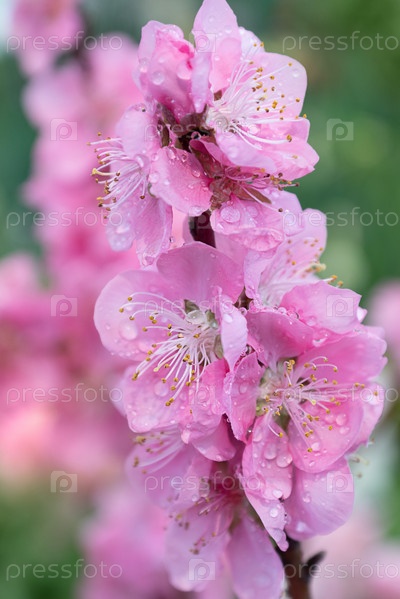 Ветка нектаринового дерева в полном расцвете с розовыми цветами в весеннем саду